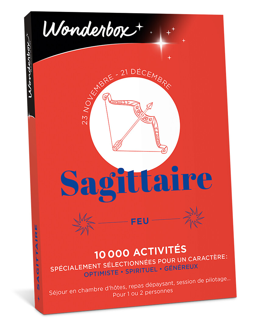 À l’image de l’astre qui vous gouverne, tout tourne autour de vous dans ce coffret ! Véritable touche-à-tout, le Sagittaire aime élargir ses horizons, découvrir de nouveaux paysages, essayer de nouvelles choses et relever des défis. Extraverti, expansif, joueur, baroudeur et plein d’énergie, vous avez besoin de multiplier les activités pour vous défouler et satisfaire votre curiosité ? Nous avons de quoi assouvir votre soif de voyages, d’aventures, de sport, de découvertes culturelles et gustatives ! Sans oublier de bons moments de détente… Un coffret sur-mesure qui vous emmènera au septième ciel !...En savoir plus