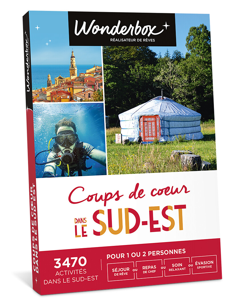 Envie de soleil, de paysages colorés et de spécialités savoureuses ? Cap sur la région Sud-Est ! Trouvez votre bonheur entre mer, montagnes, vignes, villages pittoresques et restaurants de caractère. Le cadre idéal pour toutes sortes d’activités : vol au-dessus de la ville de Nîmes, ses arènes et le pont du Gard, séjour reposant dans le Lavandou, balade en vélo dans les sublimes calanques, balade avec des chiens de traîneau dans les Hautes-Alpes, dégustation d’huile d’olive, pause gourmande à Lyon, massage dans un spa cannois… À vous de choisir !\n\nLes massages proposés dans ce coffret ont une finalité de bien-être et de relaxation et ne s'apparentent en rien à une pratique médicale....En savoir plus